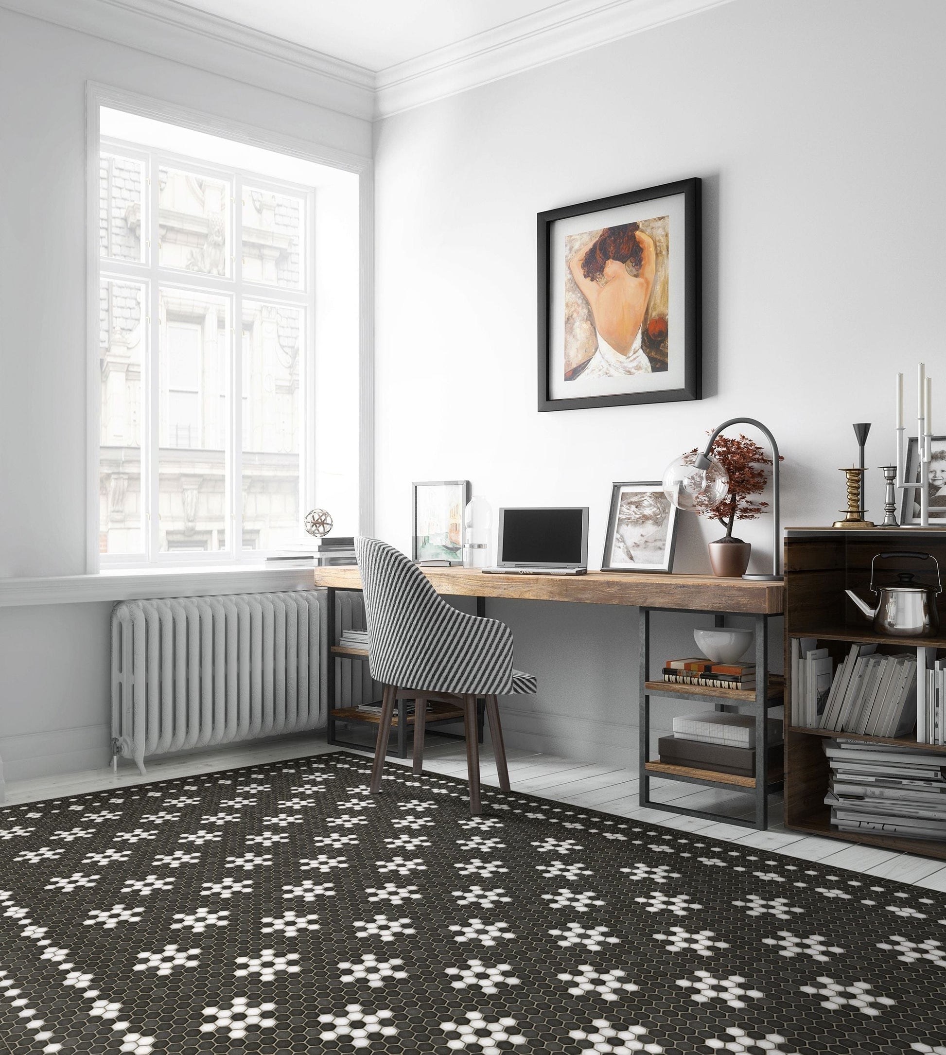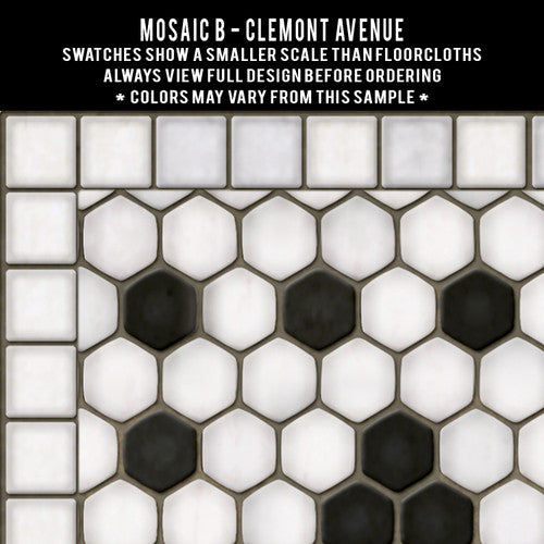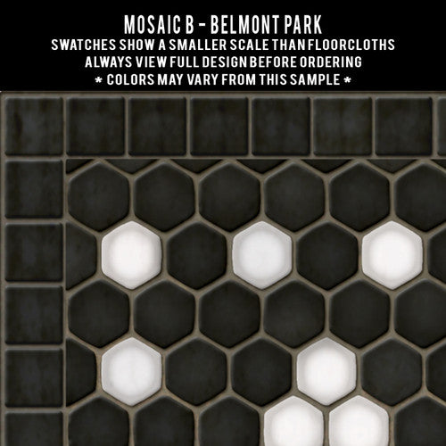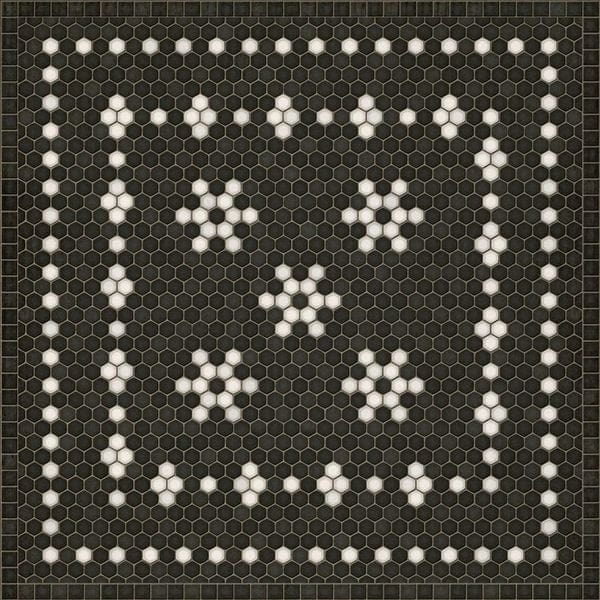 Vintage-Inspired Design: The Mosaic B Vintage Vinyl Rug boasts a captivating mosaic pattern reminiscent of classic tile designs. Its rich, intricate details and warm color palette create an inviting atmosphere in any room.