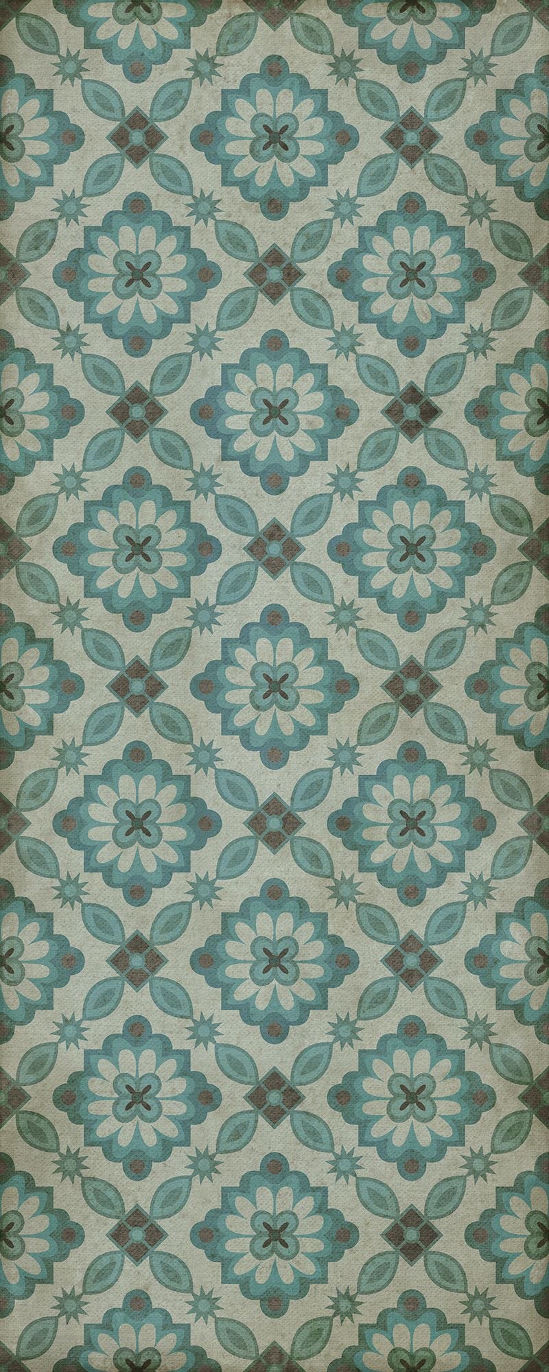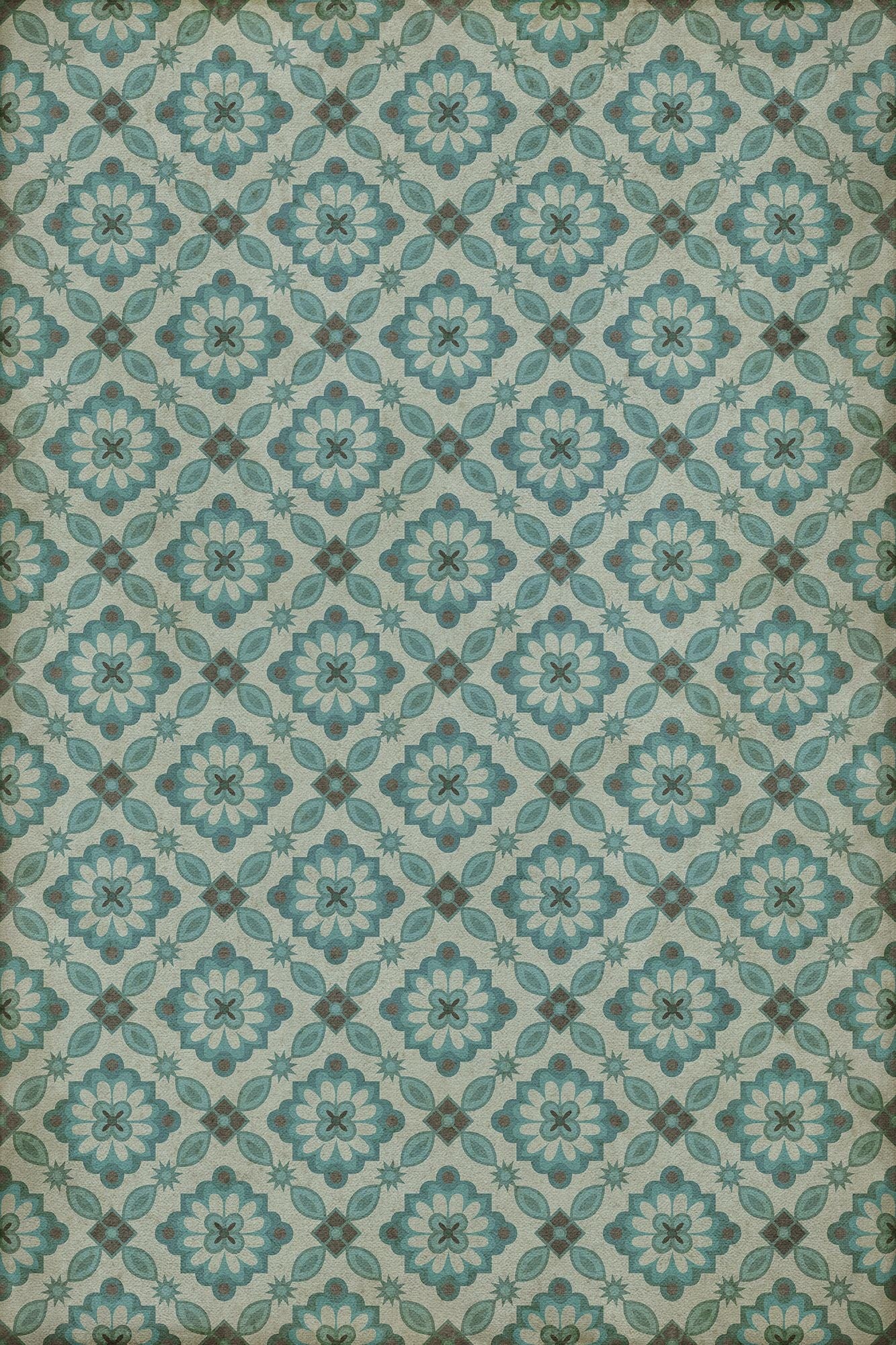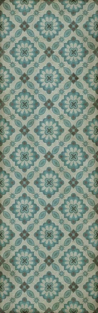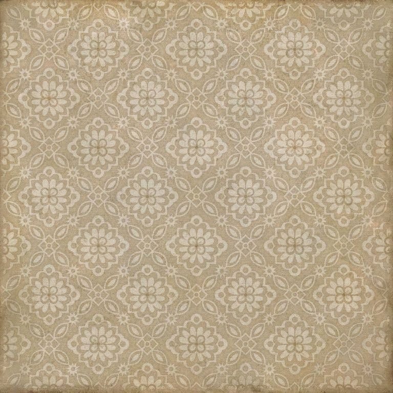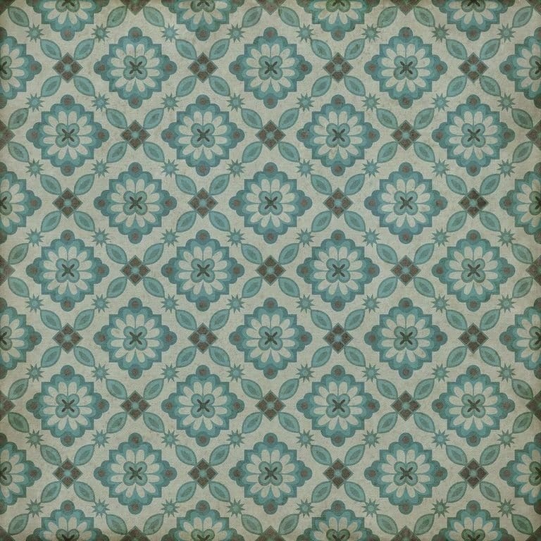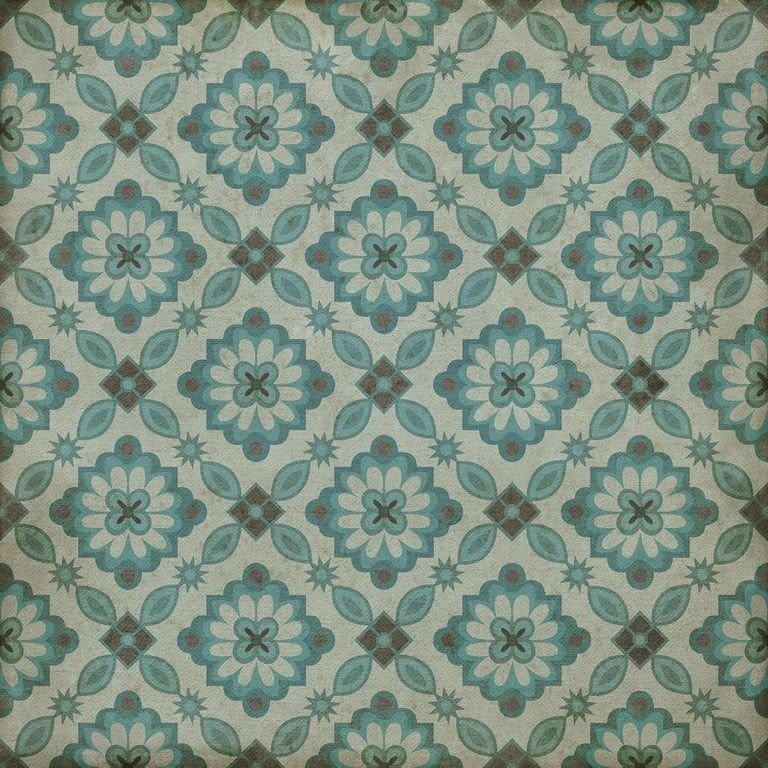 Vintage Vinyl floorcloths feature a two-ply vinyl construction with a latex padded backing, ensuring non-flammability, absence of harmful phthalates, and UV resistance for up to three years.