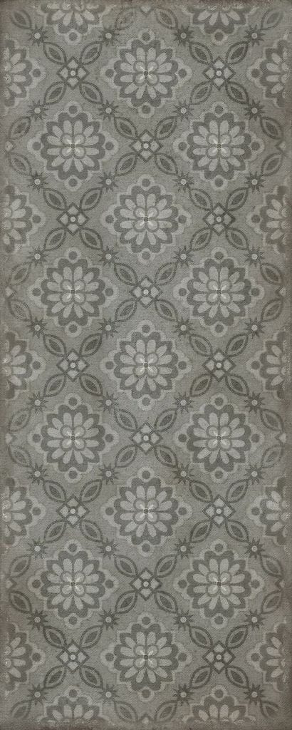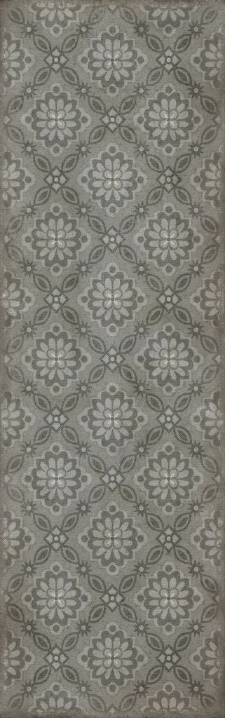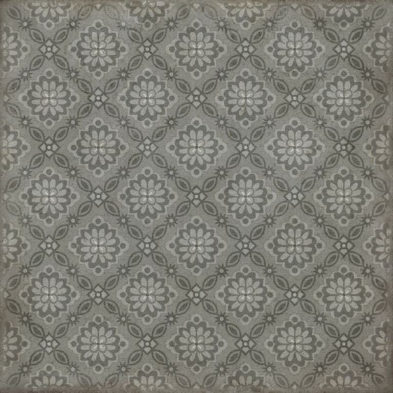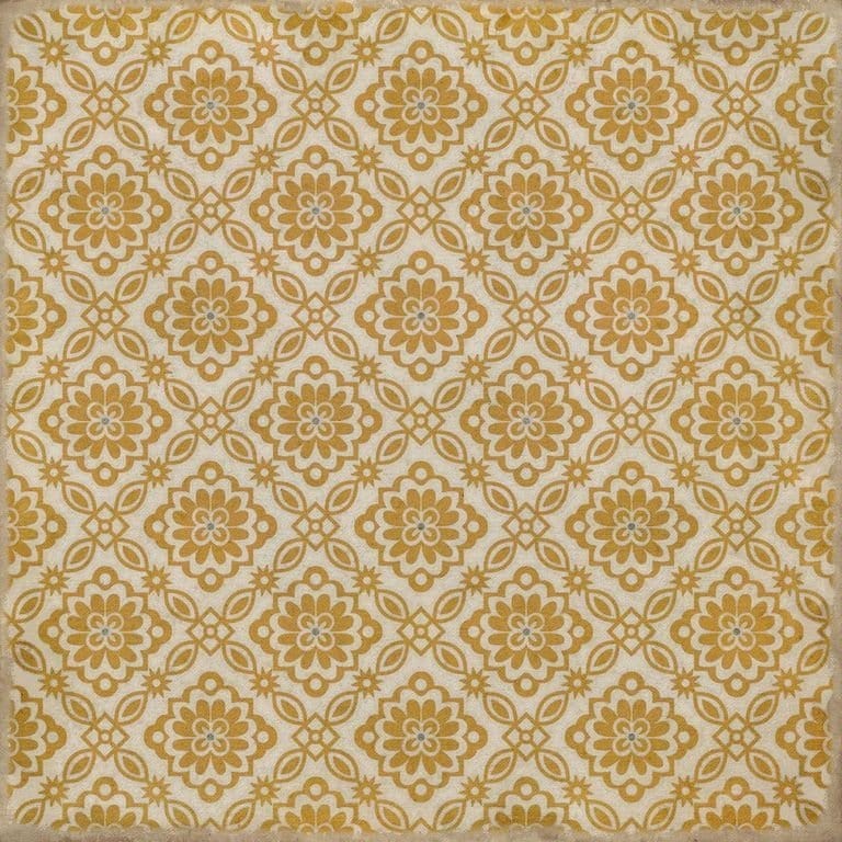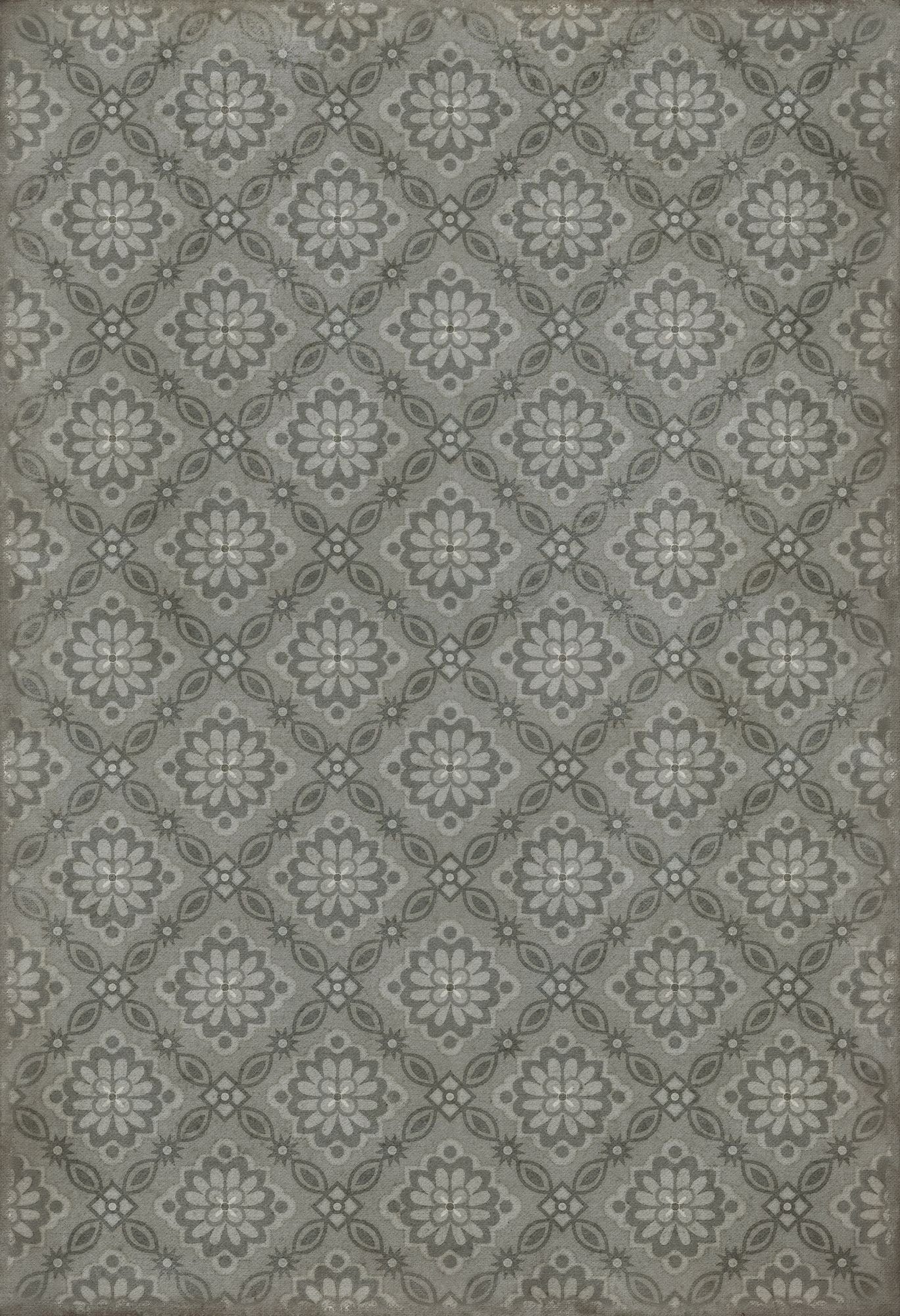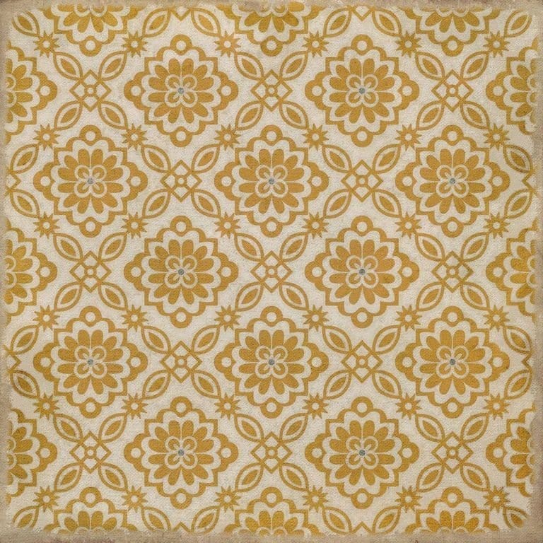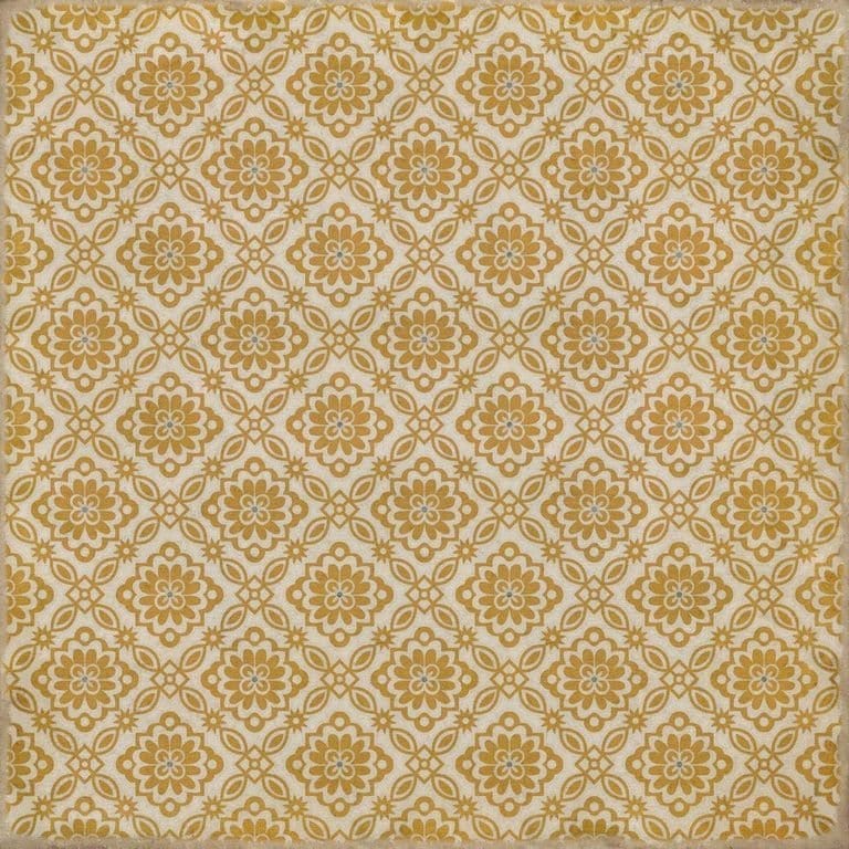 Vintage Vinyl floorcloths feature a two-ply vinyl construction with a latex padded backing, ensuring non-flammability, absence of harmful phthalates, and UV resistance for up to three years.