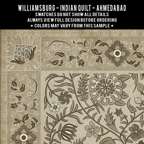 Enhance your home decor with the timeless allure of the Williamsburg Indian Quilt Vintage Vinyl Rug – order yours today and experience the perfect blend of style and durability!