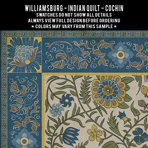 Elevate your home decor to new heights with our exquisite Williamsburg Indian Quilt Vintage Vinyl Rug. Inspired by the rich heritage of Indian quilts and meticulously crafted to infuse a touch of vintage charm into your living space, this rug is the epitome of style and practicality.