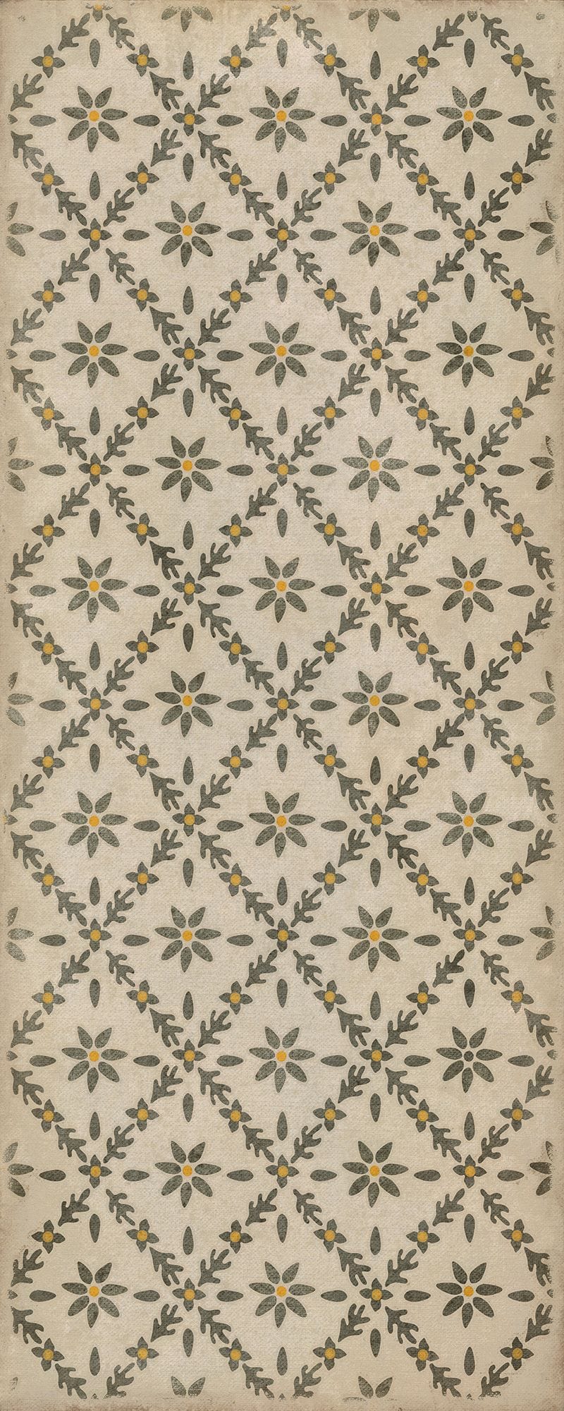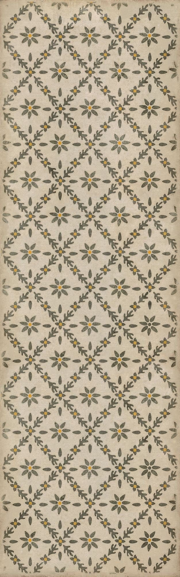 Introducing the Spicher and Company's Williamsburg Naturalist Vintage Vinyl Rug – a stunning fusion of classic elegance and modern practicality. Embrace the timeless beauty of nature with this exquisite rug, adorned with a captivating floral design that brings the outdoors indoors. Crafted with meticulous attention to detail, this rug is a true masterpiece for your home decor.
