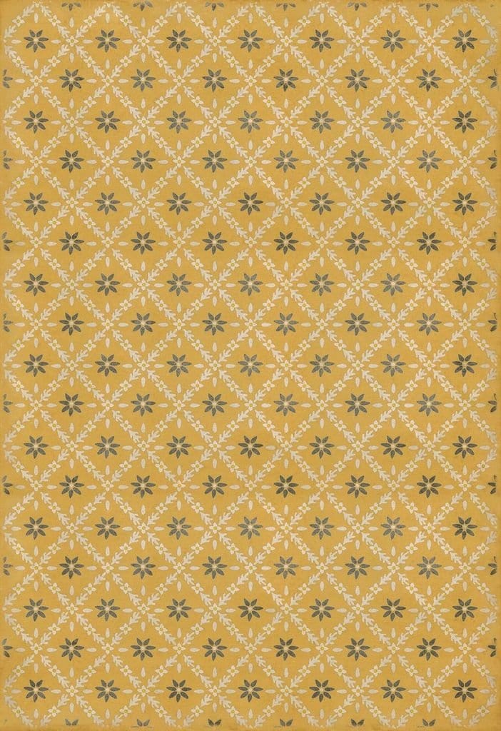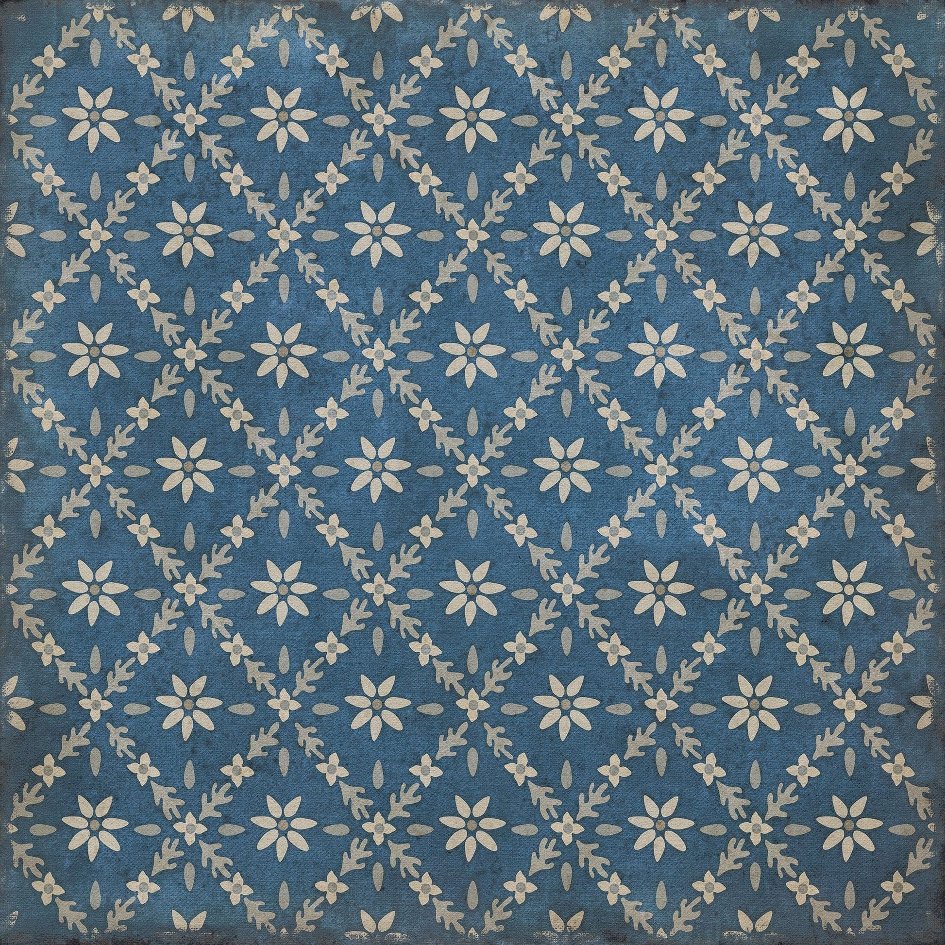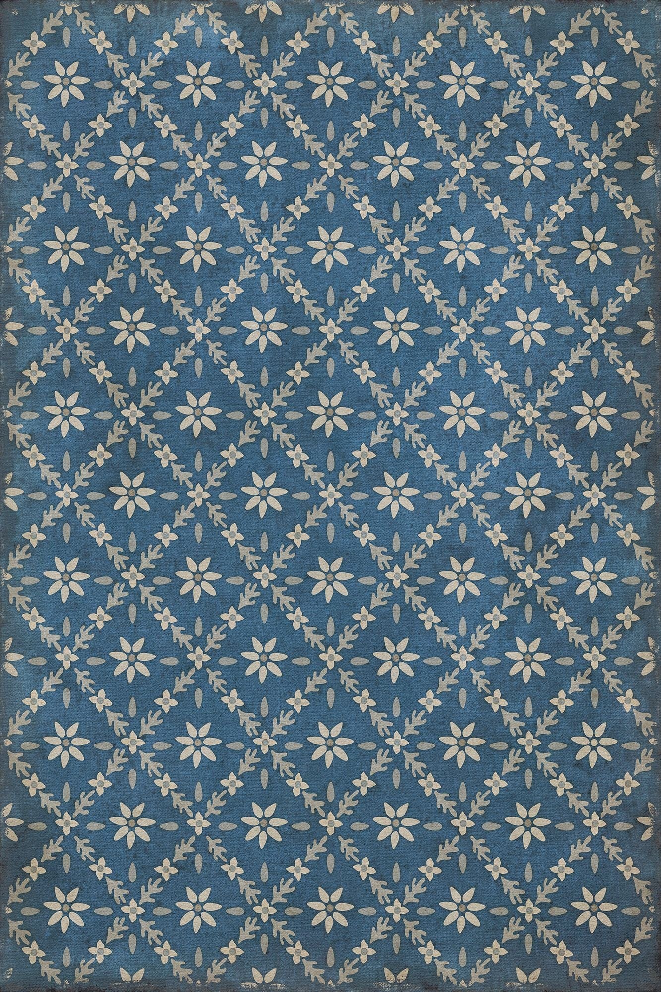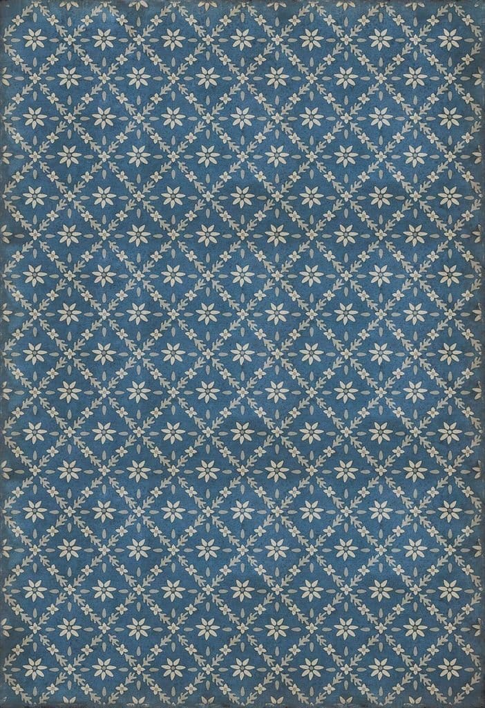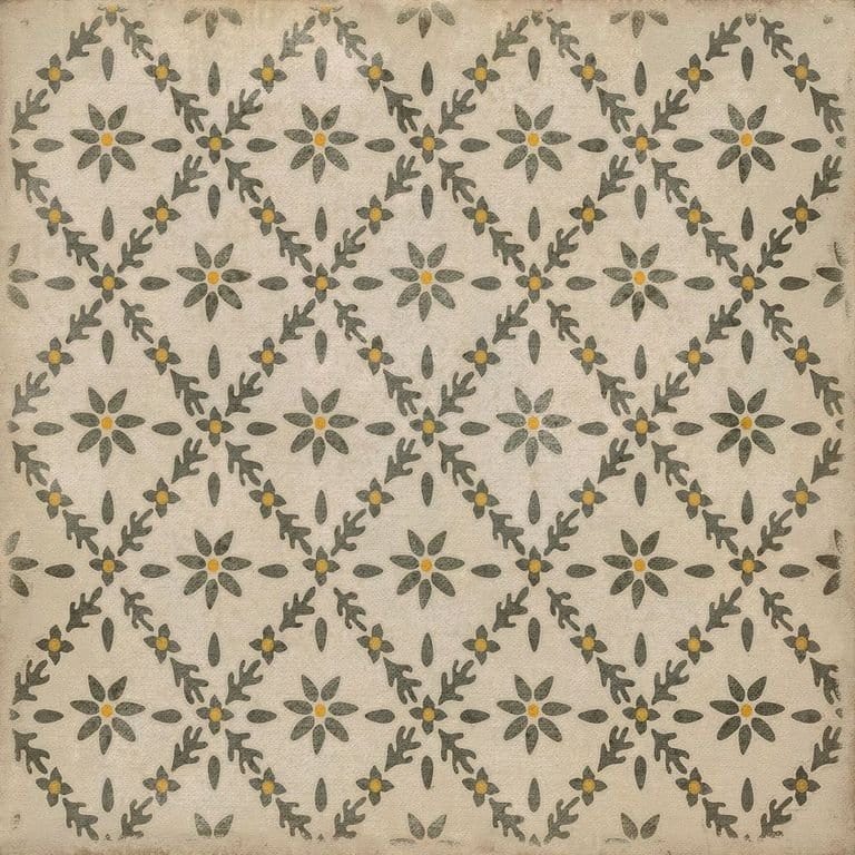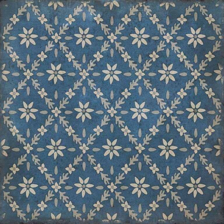 Vintage Vinyl floorcloths feature a two-ply vinyl construction with a latex padded backing, ensuring non-flammability, absence of harmful phthalates, and UV resistance for up to three years.