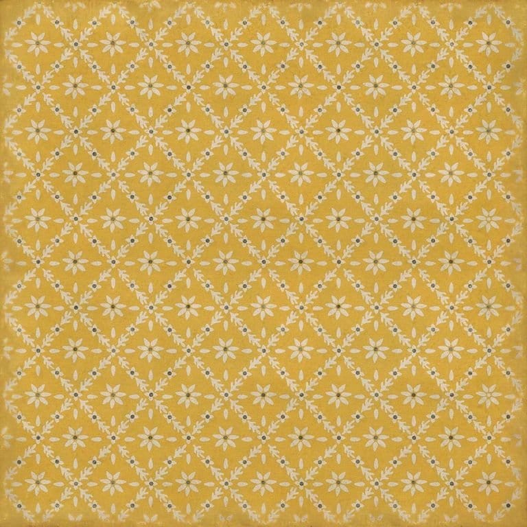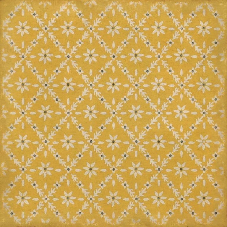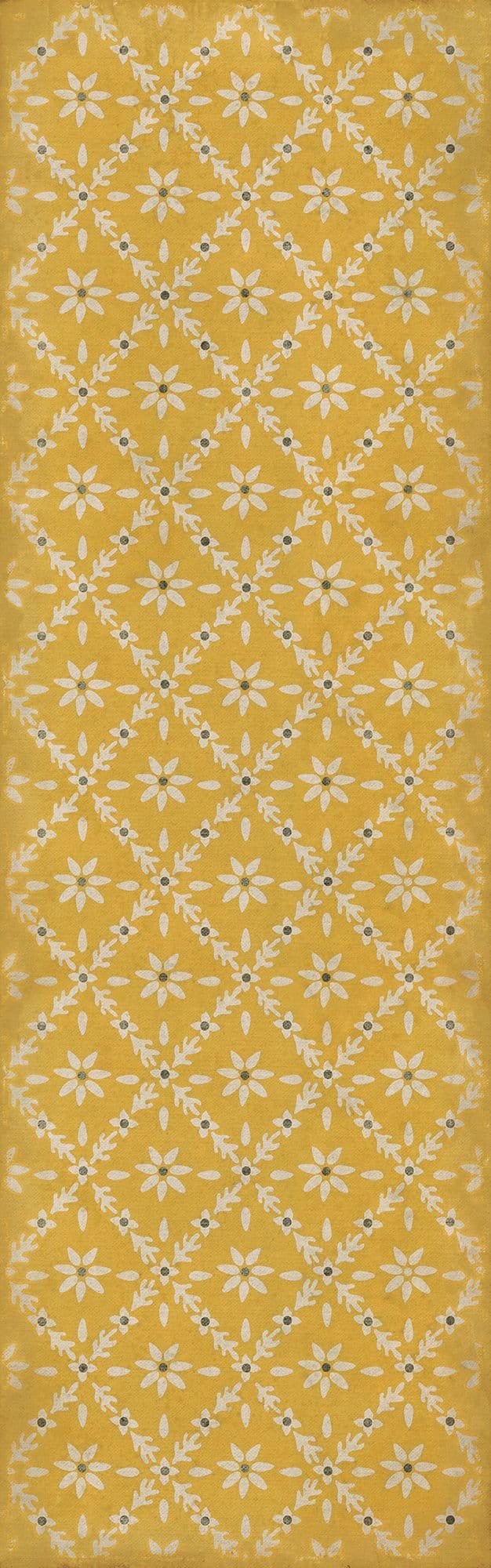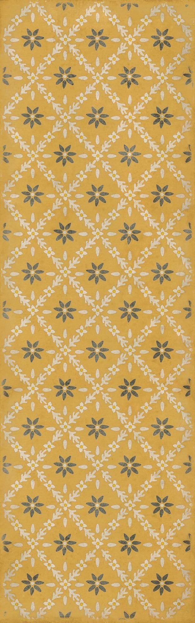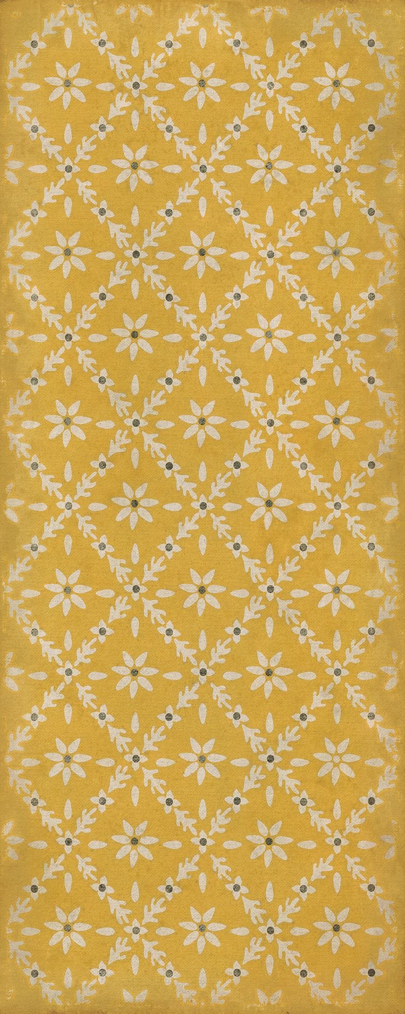 Vintage Vinyl floorcloths feature a two-ply vinyl construction with a latex padded backing, ensuring non-flammability, absence of harmful phthalates, and UV resistance for up to three years.